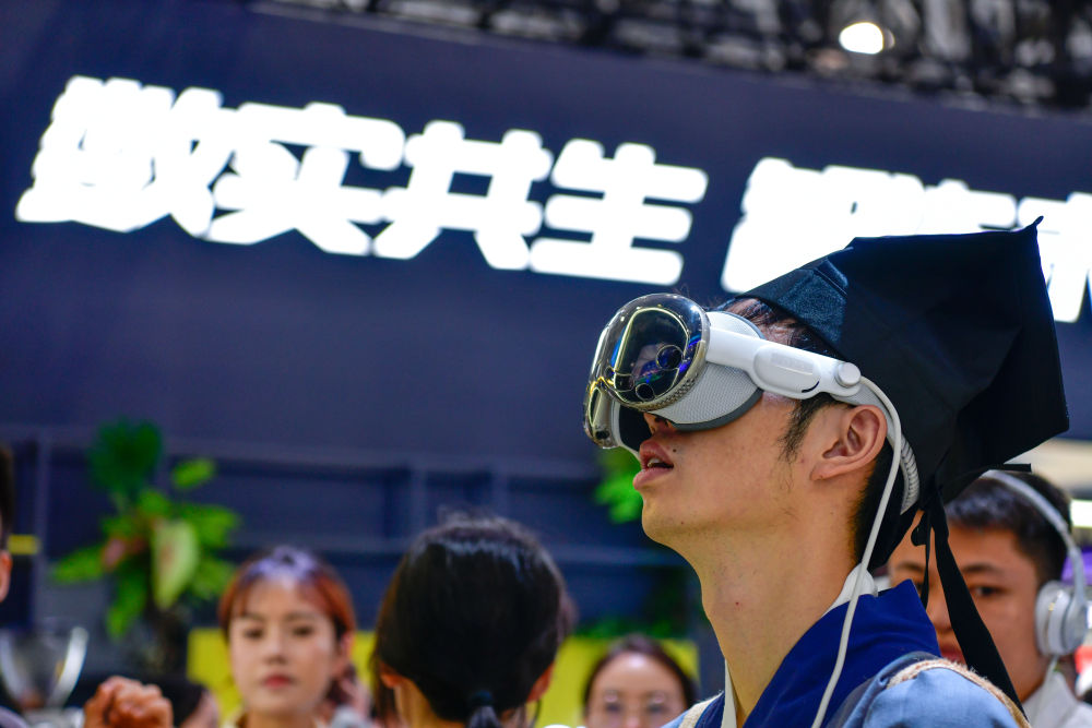 8月28日,參觀者在數(shù)博會上體驗AVP空間觀賽。