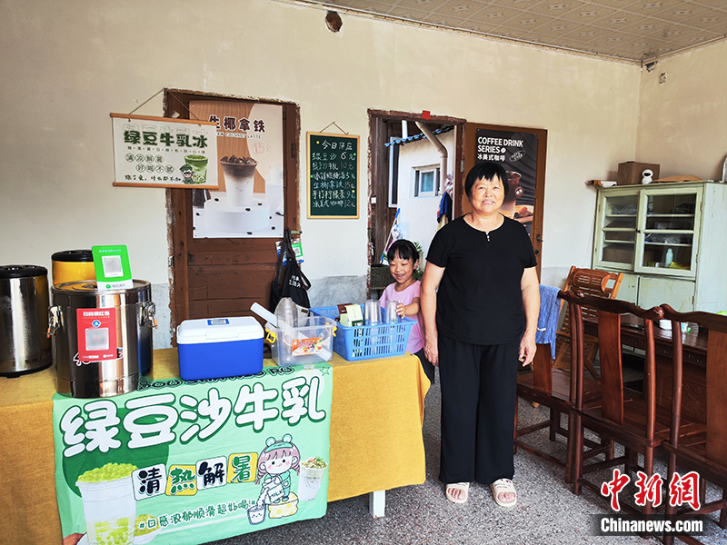 南山鎮(zhèn)中復村,村民上官大姐和她經(jīng)營的冷飲店。劉越 攝