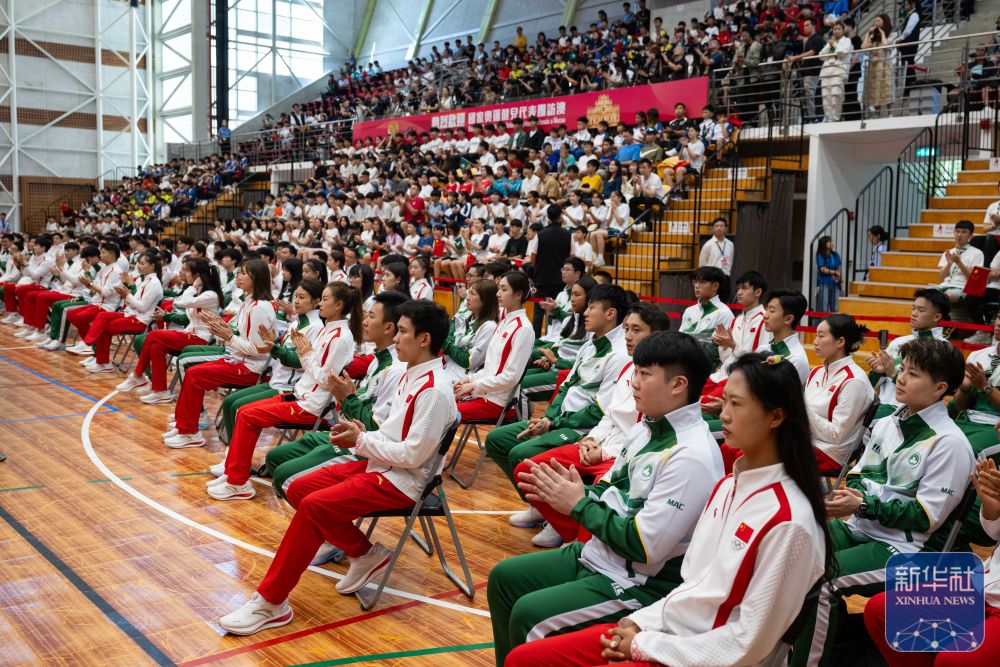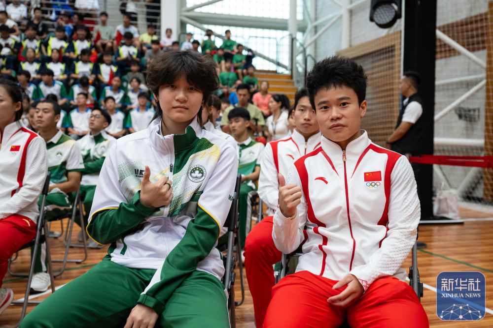9月1日,內(nèi)地奧運(yùn)健兒代表團(tuán)在澳門奧林匹克體育中心室內(nèi)體育館與澳門青少年運(yùn)動(dòng)員進(jìn)行互動(dòng)交流。