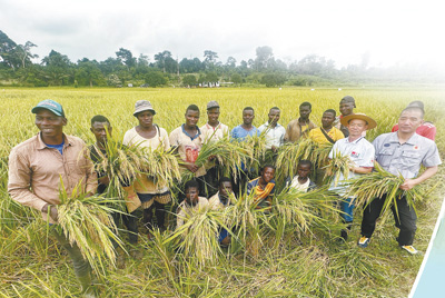 位于科特迪瓦迪沃省的格格杜墾區(qū)于1997年迎來第一批中國農(nóng)業(yè)技術(shù)合作組專家,經(jīng)過近30年的努力,墾區(qū)已成為中科兩國農(nóng)業(yè)合作示范基地和科特迪瓦全國聞名的水稻種植基地。圖為中國農(nóng)業(yè)專家與當?shù)剞r(nóng)民在水稻田中慶祝豐收。