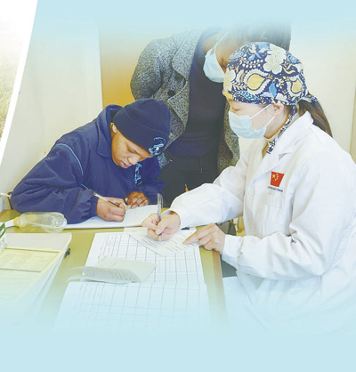 自1997年以來,中國湖北省承擔向萊索托王國派遣醫(yī)療隊的任務(wù),醫(yī)療隊隊員在當?shù)卦\治了大量常見病、多發(fā)病,治愈了眾多疑難病癥,深受萊索托民眾歡迎與尊敬。圖為第十八批中國援萊索托醫(yī)療隊醫(yī)生王琦正在接診患者。
