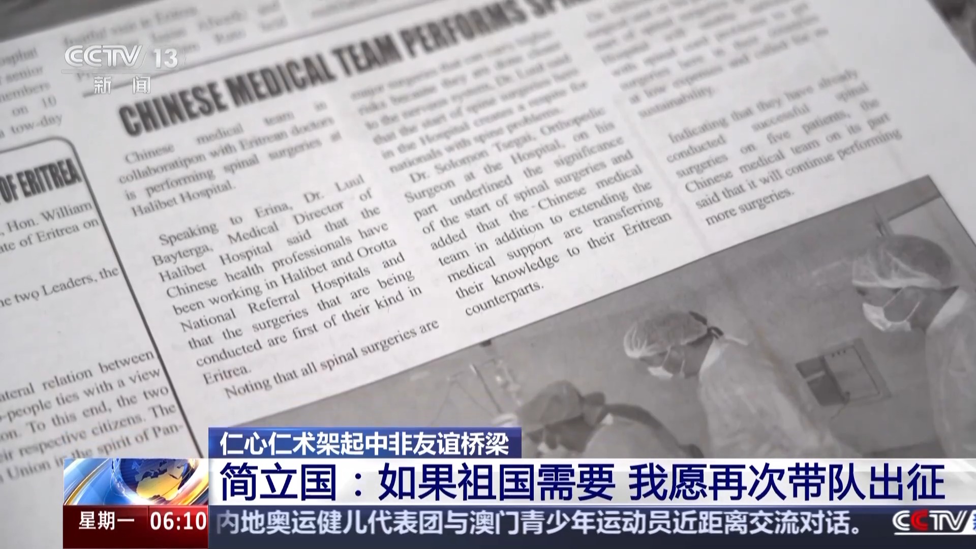 中國(guó)(河南)第15批援厄立特里亞醫(yī)療隊(duì)隊(duì)長(zhǎng) 簡(jiǎn)立國(guó):手術(shù)非常成功,這個(gè)時(shí)候,我還在援厄立特里亞沒(méi)有回來(lái),她一直非要在我們醫(yī)院等著我回來(lái),我完成任務(wù)回來(lái)見(jiàn)她的時(shí)候,她就緊緊地抱著我流眼淚。當(dāng)時(shí)我也特別感動(dòng)。