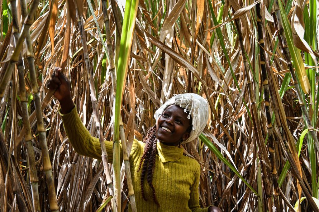 1月26日,當(dāng)?shù)剞r(nóng)民在肯尼亞納庫魯倫吉內(nèi)特村的菌草農(nóng)場除雜草。