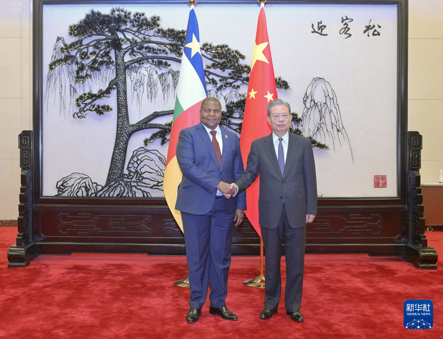 9月6日,全國人大常委會委員長趙樂際在北京會見來華出席中非合作論壇北京峰會的中非總統(tǒng)圖瓦德拉。新華社記者 高潔 攝