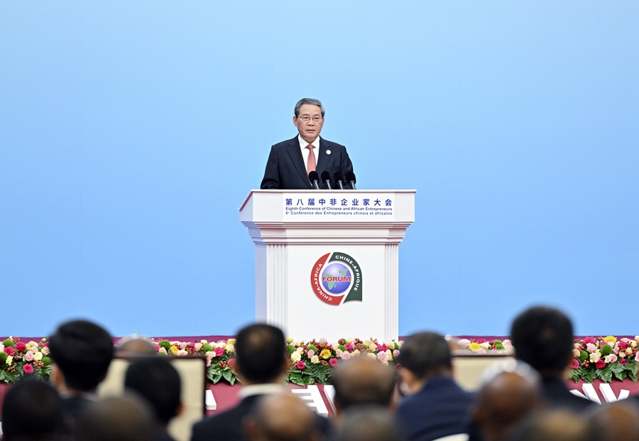 9月6日上午,國務(wù)院總理李強(qiáng)在北京國家會(huì)議中心出席第八屆中非企業(yè)家大會(huì)開幕式并致辭。新華社記者 殷博古 攝