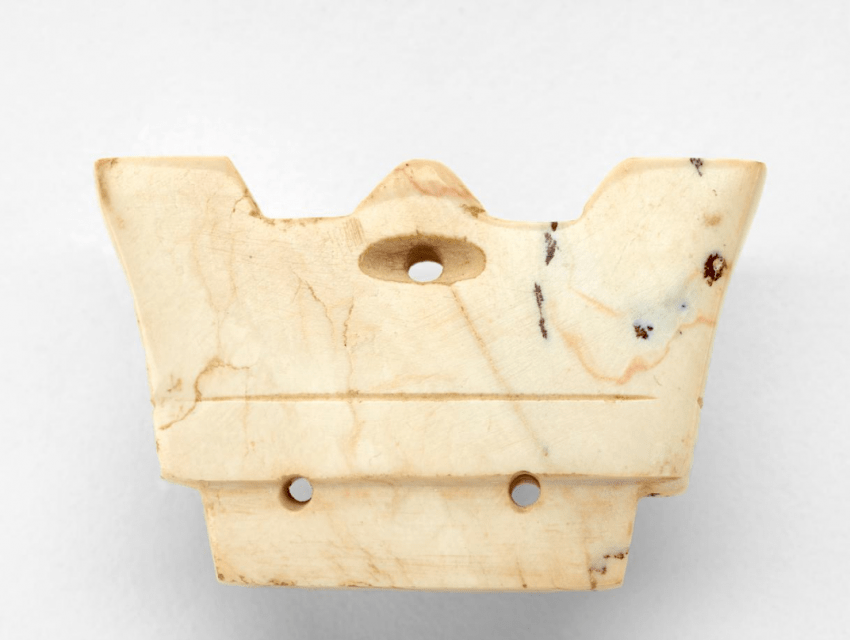 這件彩繪平底筒形罐最上面的菱形方格紋來(lái)自中亞地區(qū),其下一片片的龍鱗紋是赤峰地區(qū)的本土元素,下方勾連狀的抽象玫瑰花圖案,則是仰韶文化的元素,體現(xiàn)了5500年前三種文化在草原深處碰撞出的文明火花。