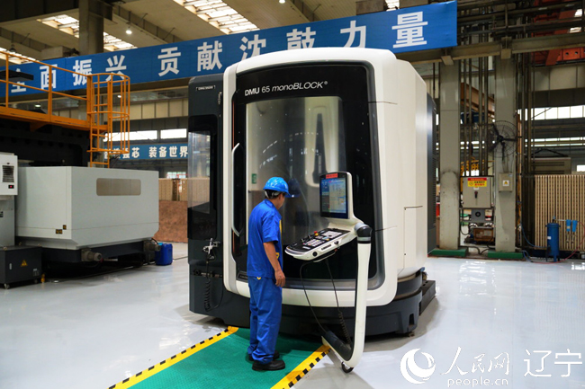 技術(shù)人員在沈鼓生產(chǎn)車間里調(diào)整設(shè)備參數(shù)。人民網(wǎng)記者 邱宇哲攝