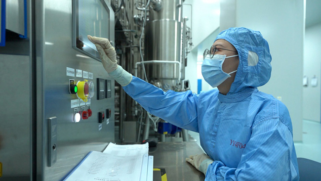藥企生產(chǎn)人員在控制制藥設(shè)備。金賽藥業(yè)供圖
