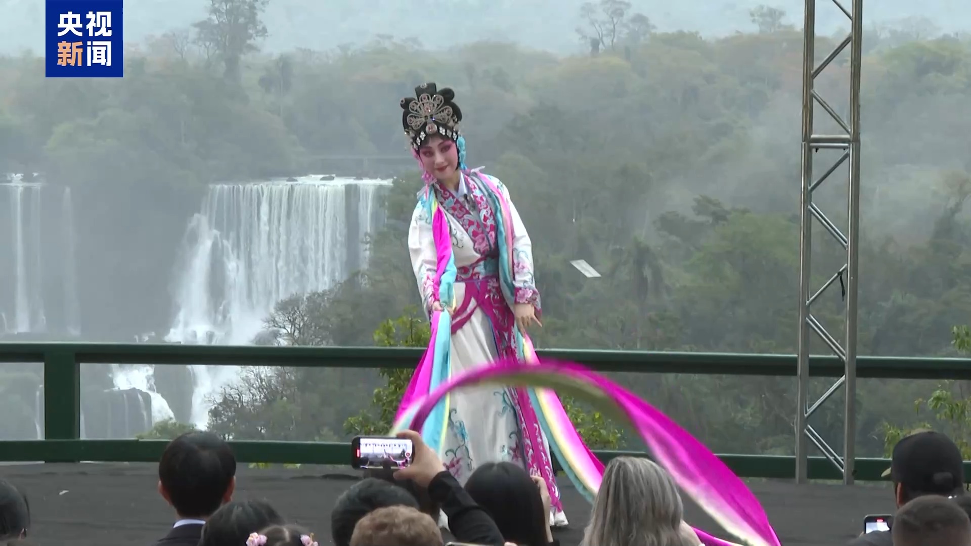 在中秋節(jié)來臨前夕,巴西伊瓜蘇市聯(lián)合中國駐圣保羅總領館等共同舉辦“瀑布之夜中秋晚會”。晚會在聯(lián)合國世界自然遺產伊瓜蘇瀑布旁上演,百余名中巴觀眾欣賞了浙江婺劇藝術研究院帶來的表演。