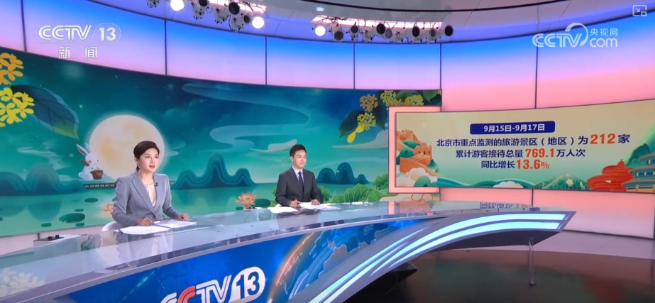 通過數(shù)據(jù)盤點(diǎn)各地出游的情況,北京市文旅局統(tǒng)計,9月15日至17日,北京全市重點(diǎn)監(jiān)測的旅游景區(qū)(地區(qū))為212家,累計游客接待總量769.1萬人次,同比增長13.6%,比2019年增長1.4倍。