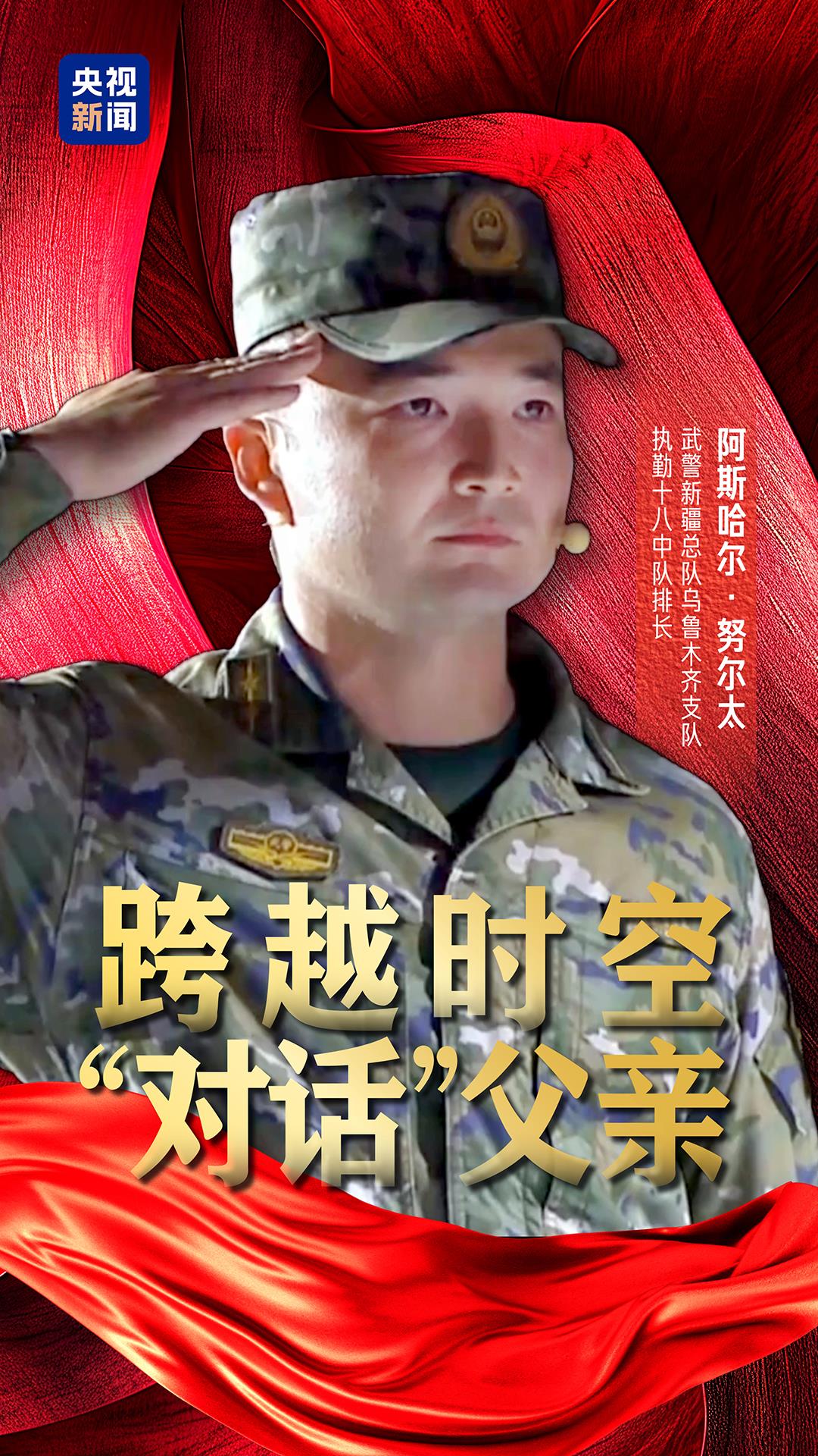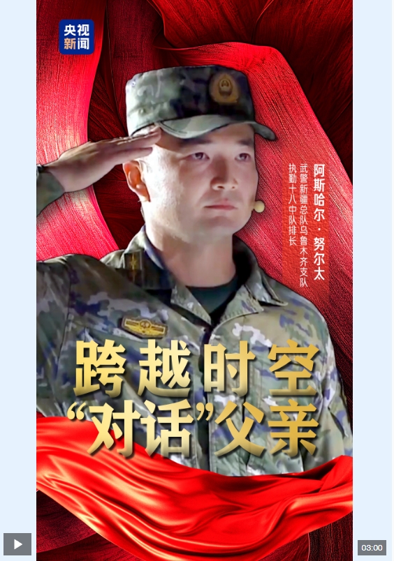21日晚《把青春華章寫(xiě)在祖國(guó)大地上》大思政課網(wǎng)絡(luò)主題活動(dòng)現(xiàn)場(chǎng),投筆從戎的南開(kāi)學(xué)子阿斯哈爾 · 努爾太,通過(guò)AI技術(shù)穿越時(shí)空與父親對(duì)話。阿斯哈爾獻(xiàn)給父親的一個(gè)軍禮,令無(wú)數(shù)人動(dòng)容。