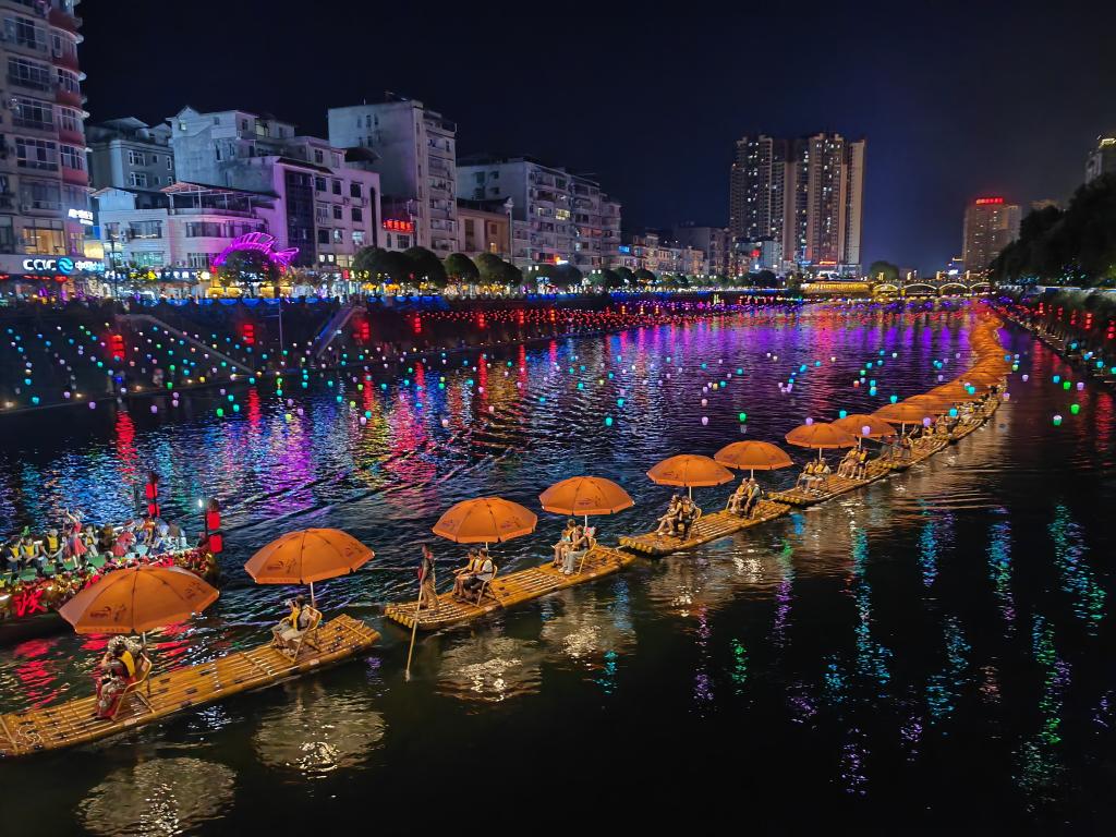 湖北宣恩,地處鄂西。一條河、兩條街,縣城的核心區(qū),是一個(gè)開放式的4A級(jí)景區(qū)。每當(dāng)夜幕降臨,這里就進(jìn)入了一天中最熱鬧的時(shí)段。波光粼粼的河面上,兩條“龍船”滿載游客,蜿蜒行進(jìn),街市上人頭攢動(dòng),香味撲面,一幅宛如“清明上河圖”的景象令人贊嘆。