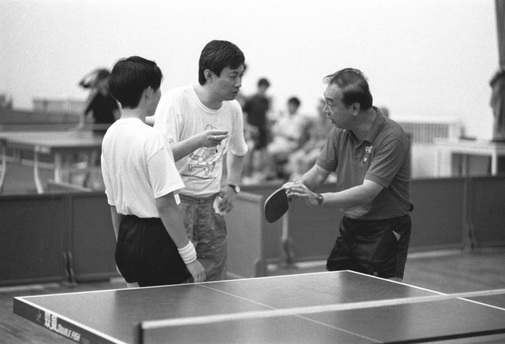 這是張燮林(右)在第35屆世界乒乓球錦標(biāo)賽女子雙打比賽中指導(dǎo)葛新愛、閻桂麗(資料照片)。新華社記者 胡偉 攝