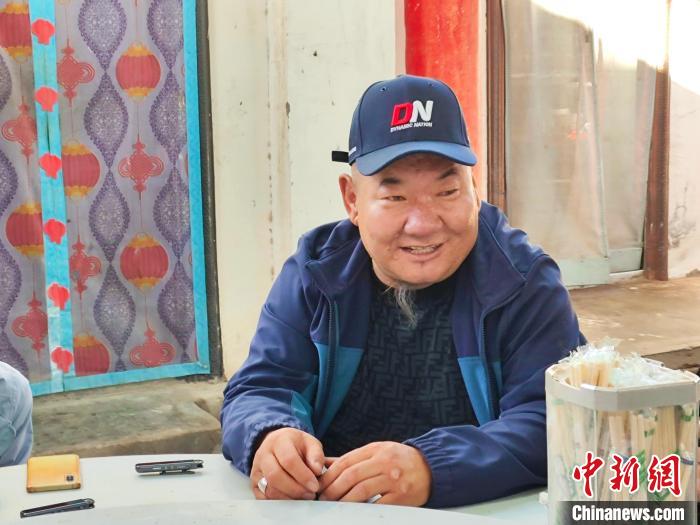 9月20日,阿拉善右旗雅布賴(lài)鎮(zhèn)嘎查牧民阿拉騰格日樂(lè)接受記者采訪(fǎng)。中新社記者 陳溯 攝