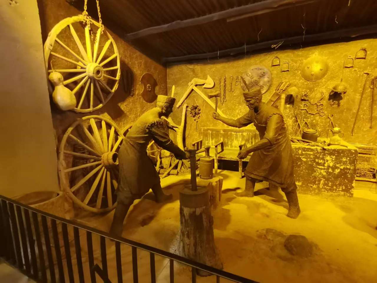 在古城“不經(jīng)意的轉(zhuǎn)角”,迎著昏黃的燈光,記者走入了一家鐵匠鋪。憑借精致的鐵器工藝品、各式各樣的打鐵工具、“爐火純青”的現(xiàn)場展示,“坎土曼巴扎鐵業(yè)社”引來眾多游客駐足。據(jù)介紹,麥麥提艾力 吾布力卡斯木家族從清末到現(xiàn)在,一直從事傳統(tǒng)鐵器手工打制營生。這間老城街巷里的鐵匠鋪歷經(jīng)五代傳承,伴隨著從2010年開始的喀什老城區(qū)危舊房改造,經(jīng)過兩次改造、提升、活化,打鐵鋪舊貌換新顏,但土灶、爐火與捶打聲如故。