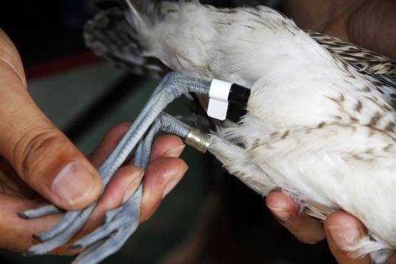 環(huán)志,簡單說就是給鳥“上身份”——在鳥腿上佩戴刻有唯一編碼和中國鳥類環(huán)志中心地址的金屬環(huán),有時還佩戴彩色塑料旗標(biāo)或塑料環(huán)?!巴ㄟ^環(huán)志可以得知鳥的基本信息、遷徙規(guī)律,包括年齡、繁殖地、越冬地、飛行途中在哪里停歇等?!眳俏≌f。