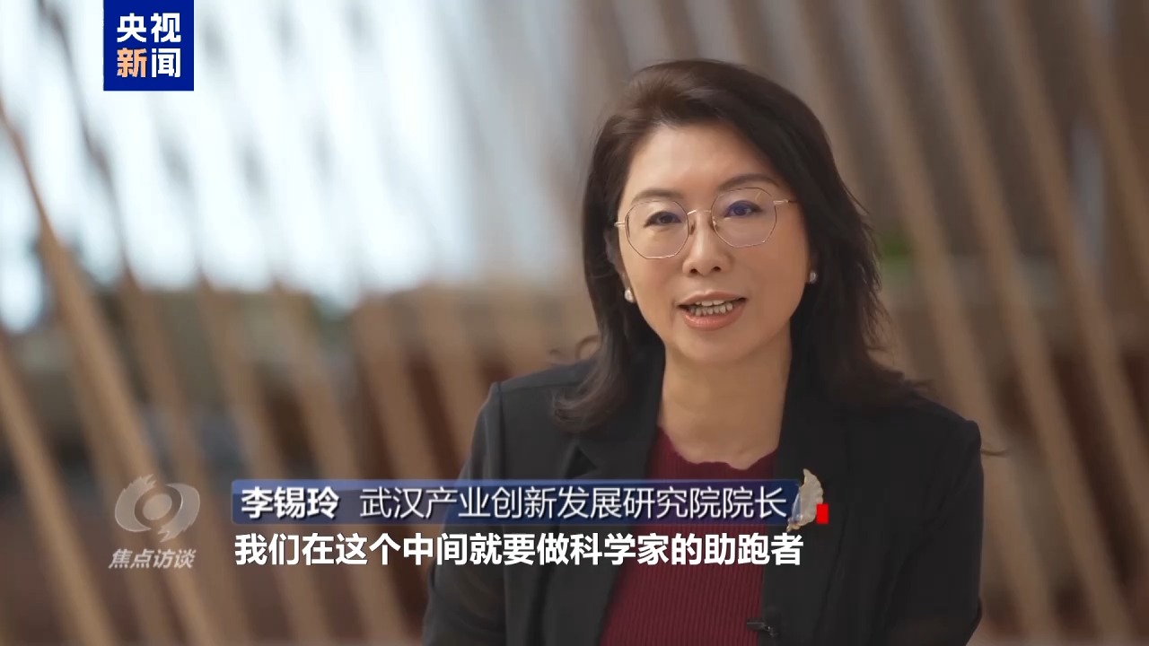 武漢產(chǎn)業(yè)創(chuàng)新發(fā)展研究院院長 李錫玲:我們在這個中間就要做科學(xué)家的助跑者,整個轉(zhuǎn)化的過程中他需要什么,我們來給他補足什么。