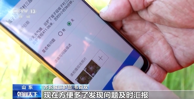 不只新材料,近年來山東出臺《山東省齊長城保護(hù)條例》,依據(jù)齊長城在沿線7座城市的長度和巡護(hù)任務(wù)量,共設(shè)置了860名公益巡護(hù)員,每天一次對齊長城進(jìn)行巡護(hù)。在齊長城淄博段,記者看到,現(xiàn)在巡護(hù)員們還有了“智慧幫手”。