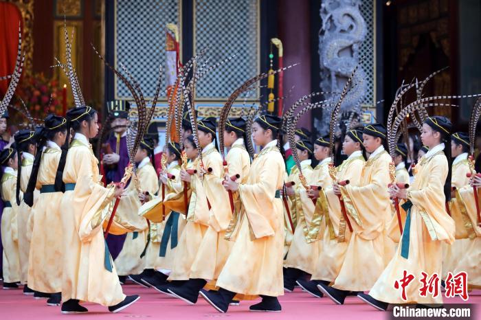 9月28日,臺北市各界紀念大成至圣先師孔子誕辰釋奠典禮在臺北孔廟舉行。 中新社記者 陳小愿 攝