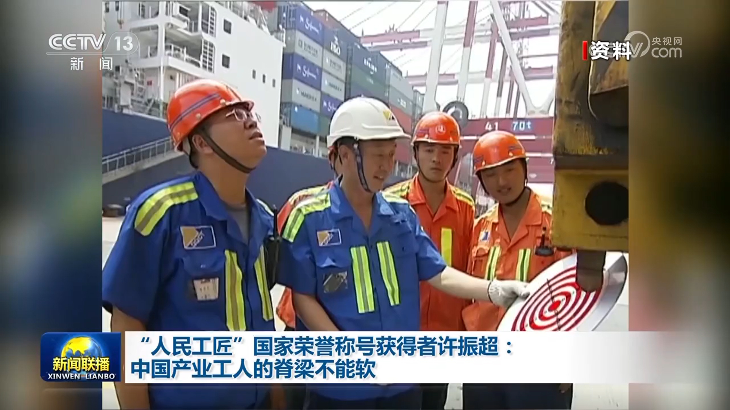 央視網消息(新聞聯(lián)播):他帶領團隊九次打破集裝箱裝卸的世界紀錄,開創(chuàng)了全國聞名的“振超效率”,他就是“人民工匠”國家榮譽稱號獲得者許振超。