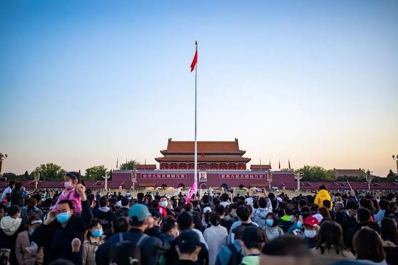 來(lái)自全國(guó)各地的觀眾聚集于天安門廣場(chǎng)