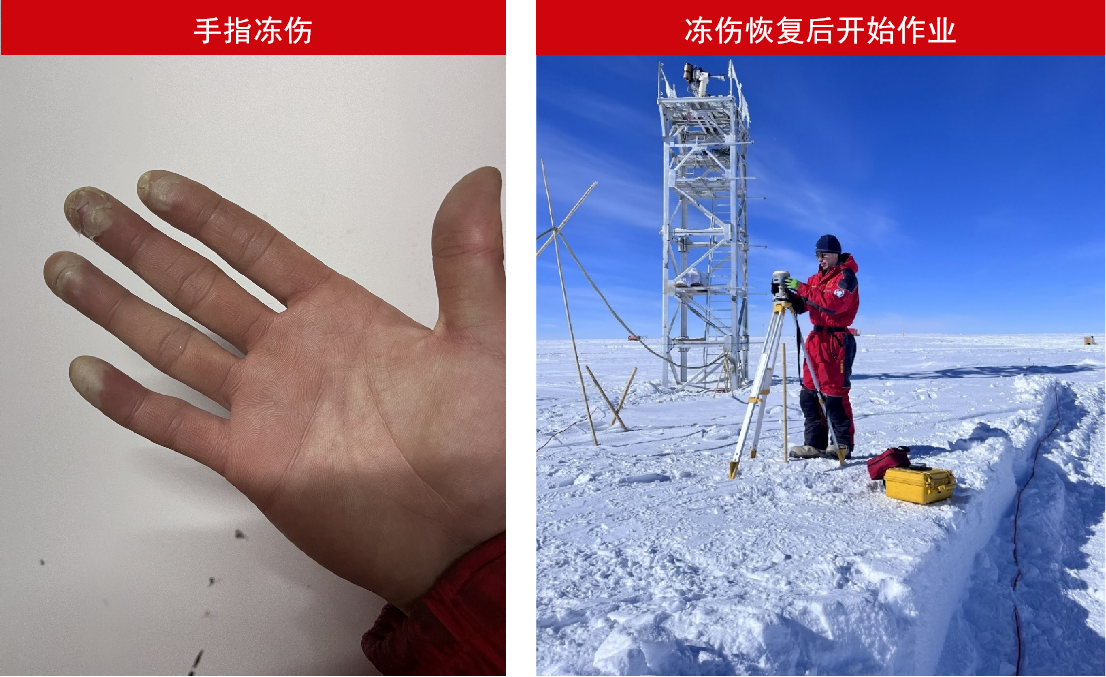 真正到了南極,他也親身體會了這些生死挑戰(zhàn)。在剛剛抵達昆侖站開展作業(yè)的過程中,因為需要點觸手機屏幕,不能穿戴厚手套,超過零下30度的極寒凍傷了他的手指,隨隊醫(yī)生診斷說再嚴重下去可能會有截肢的風(fēng)險。“我難道我就這樣無法完成這次的任務(wù)了嗎?”在耿通強烈地請求下,醫(yī)生為他做了引流治療,傷情才得以好轉(zhuǎn)。而他也未等手指恢復(fù),便投入到緊張的科研工作中。