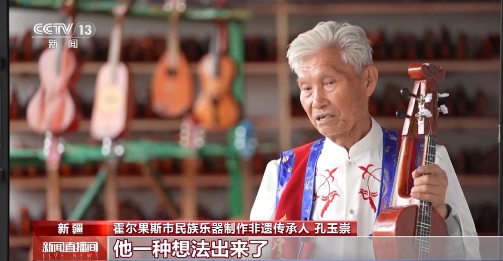 霍爾果斯市民族樂器制作非遺傳承人 孔玉崇:我現(xiàn)在的想法是,把這個樂器的質(zhì)量要提升,提升到一個很高的層次上。一定要走出去,我們的聲音傳到全世界,那是絕美的聲音。