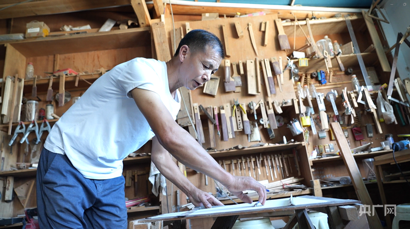 陸根衛(wèi)正在繪制模型圖紙(央廣網(wǎng)發(fā) 張明輝 攝)