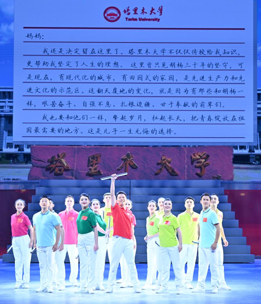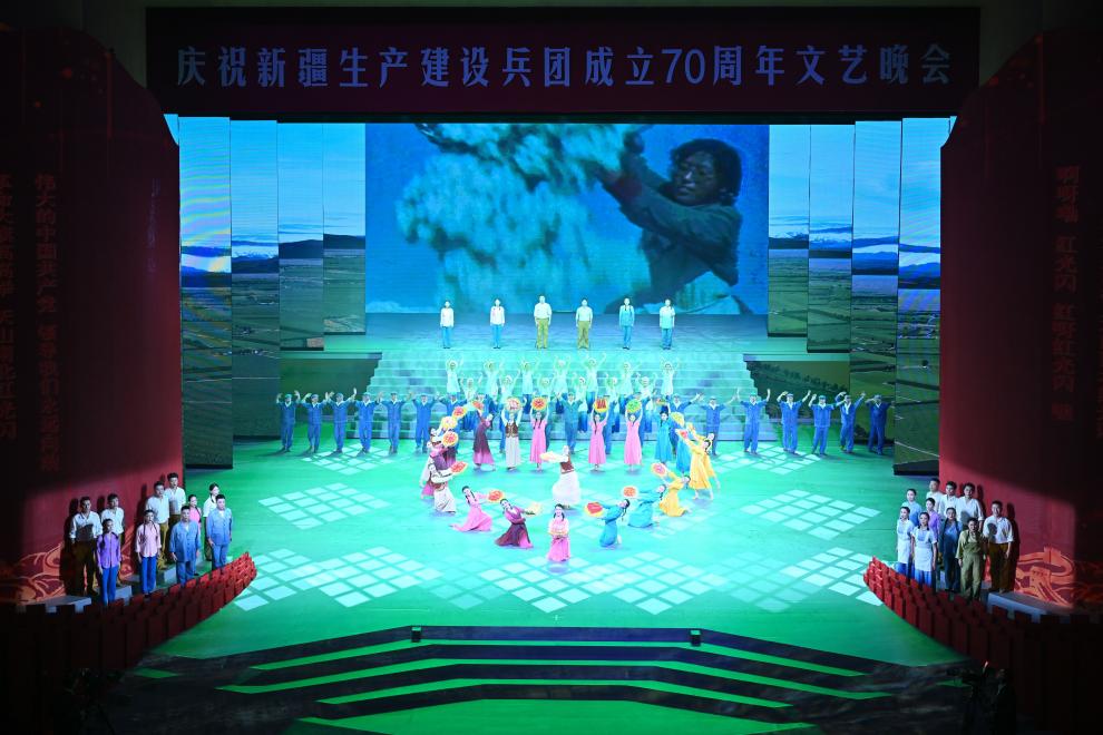 10月6日,慶祝新疆生產(chǎn)建設(shè)兵團(tuán)成立70周年文藝晚會《光榮使命》在烏魯木齊文化中心大劇院舉行。