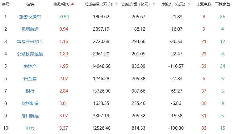 A股市場板塊漲跌幅排行