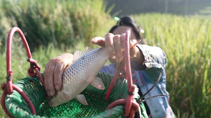 而侗族人民的智慧遠(yuǎn)不止于此,他們巧妙地利用當(dāng)?shù)刈匀画h(huán)境,孕育出獨(dú)特的“稻魚(yú)鴨”共生稻作文化。從江縣往洞鎮(zhèn)增沖種植養(yǎng)殖專(zhuān)業(yè)合作社負(fù)責(zé)人石剛勇說(shuō),“種植一季稻、放養(yǎng)一批魚(yú)、飼養(yǎng)一批鴨,稻魚(yú)鴨系統(tǒng)能夠和諧共存,是因?yàn)榇蛄藭r(shí)間差。種稻的時(shí)候放魚(yú)苗,魚(yú)苗能清理土壤,讓土壤疏松。等到農(nóng)歷的三月下旬或四月上旬,再放入鴨苗。此時(shí)的秧苗已經(jīng)長(zhǎng)成,剛出生不久的鴨苗不會(huì)損壞秧苗,鴨子吃田里的蟲(chóng)子,它們的糞便喂魚(yú),魚(yú)糞又滋養(yǎng)稻谷,這就形成了一個(gè)完美的生態(tài)循環(huán)。”