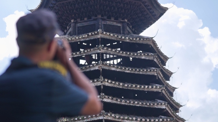 從江縣文物事業(yè)發(fā)展中心主任楊昌煥頻繁到訪(fǎng)增沖村,只因?yàn)檫@里到處都是鄉(xiāng)土智慧的結(jié)晶。“無(wú)法復(fù)制、獨(dú)一無(wú)二……”提及增沖鼓樓,楊昌煥有著說(shuō)不完的夸贊?!氨M管歷經(jīng)多次維修,但其主體結(jié)構(gòu)依然保存完好。鼓樓平面為正八邊形,立面為穿斗式十三層密檐雙層樓冠八角攢尖頂,獨(dú)特的‘內(nèi)四外八’柱網(wǎng)布局,在節(jié)省材料的同時(shí)最大化利用了底層空間。樓身與樓冠之間獨(dú)特的構(gòu)造關(guān)系,雖然看似結(jié)構(gòu)穩(wěn)定性差,但它卻聳立300多年依舊安然無(wú)恙,這無(wú)疑展示了建造者的高超技藝。”