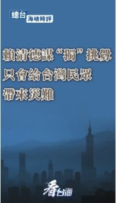 《總臺(tái)海峽時(shí)評》:賴清德謀“獨(dú)”挑釁,只會(huì)給臺(tái)灣民眾帶來災(zāi)難!
