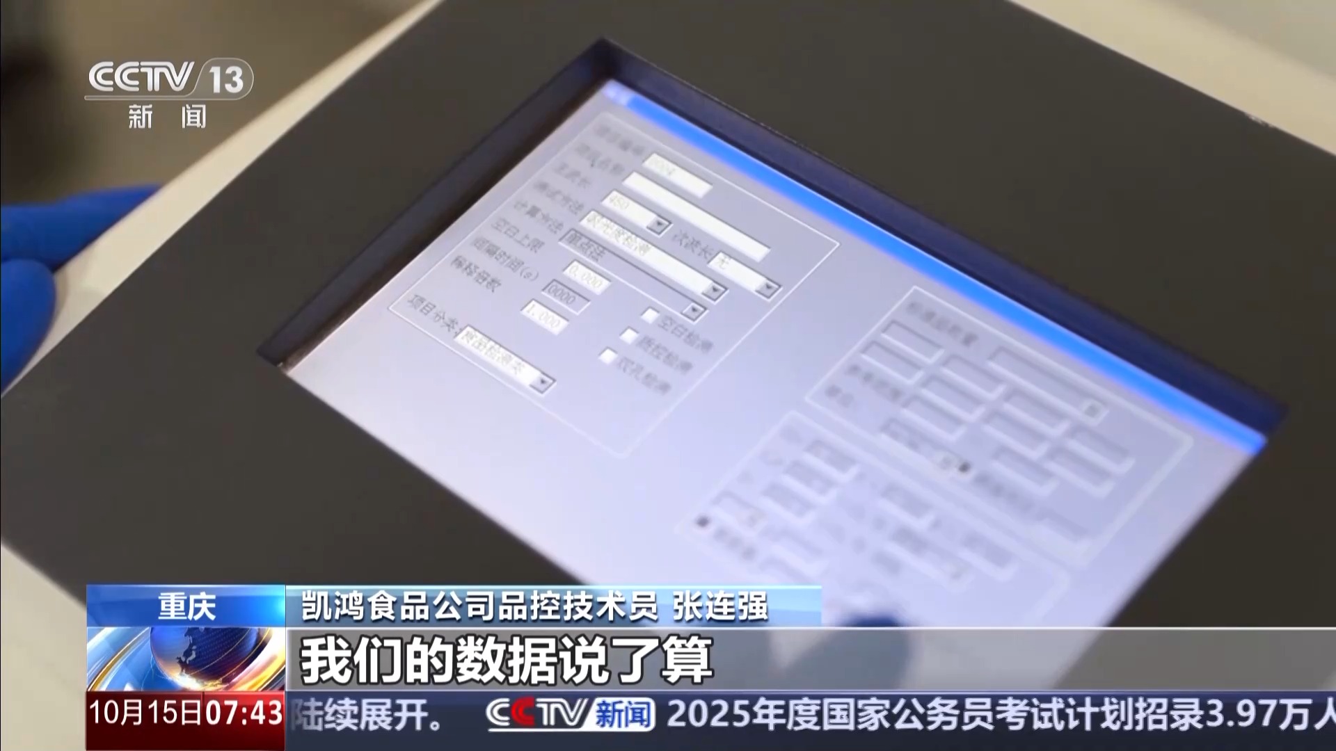 重慶凱鴻食品公司品控技術(shù)員 張連強(qiáng):像牛肉就要檢測七項(xiàng),比如說里面的過氧化脂,精確到了每百克不得超過0.25克,非常嚴(yán)格。產(chǎn)品好不好,能不能走向市場,老板說了不算,我們的數(shù)據(jù)說了算。