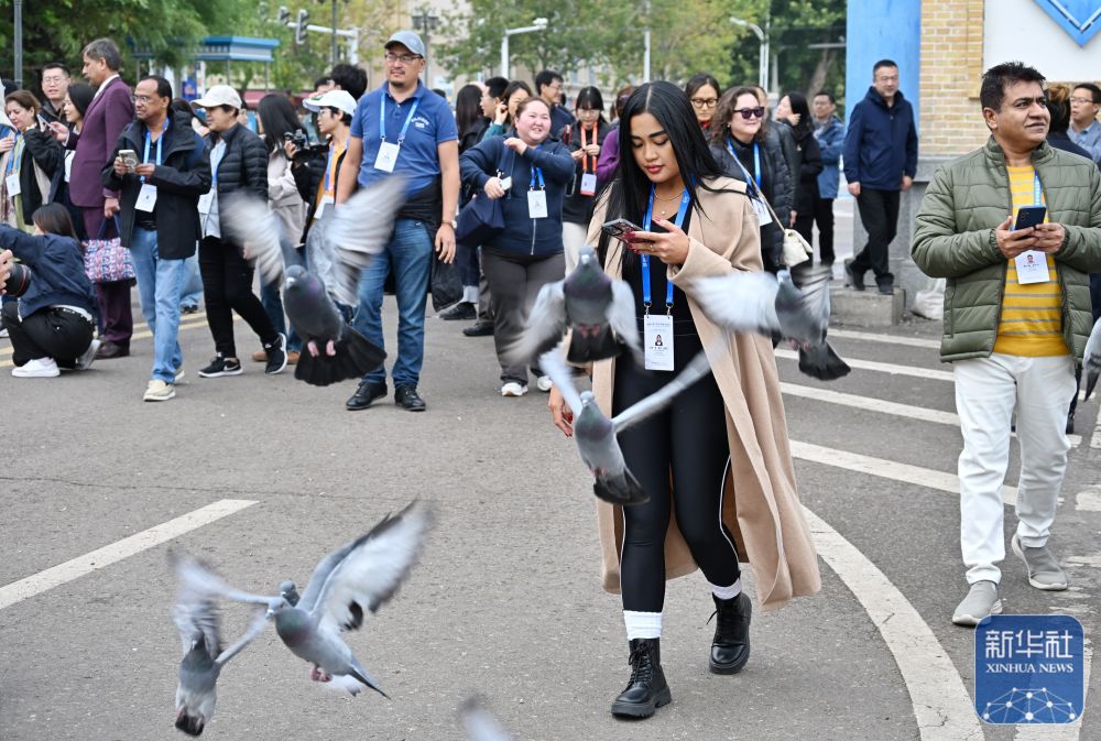10月15日,與會嘉賓在伊寧市喀贊其民俗旅游區(qū)參觀。