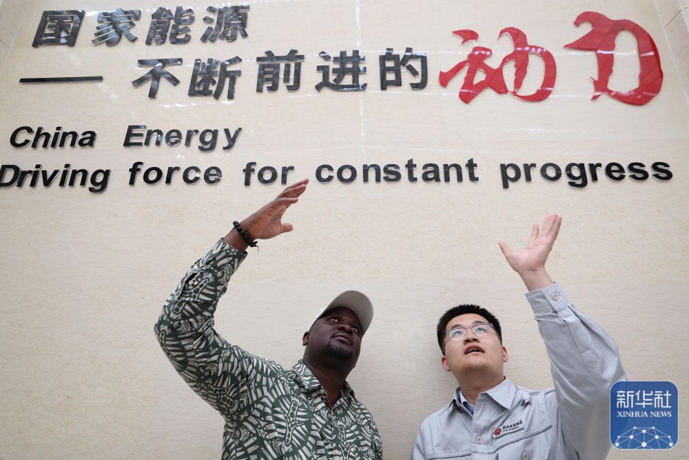 10月15日,與會嘉賓在國家能源集團龍源吐魯番新能源有限公司參訪時與工作人員交流。