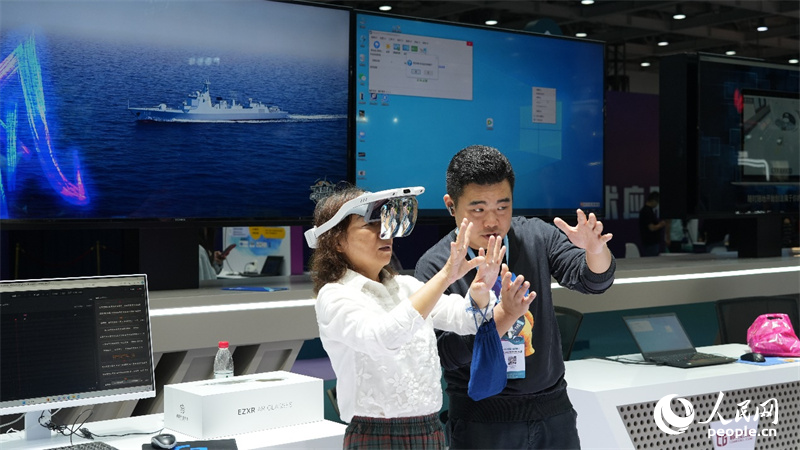 觀眾在新媒體技術(shù)展進(jìn)行AR互動(dòng)體驗(yàn)。人民網(wǎng)記者 吳茜薇攝