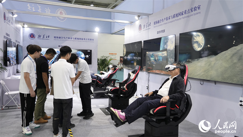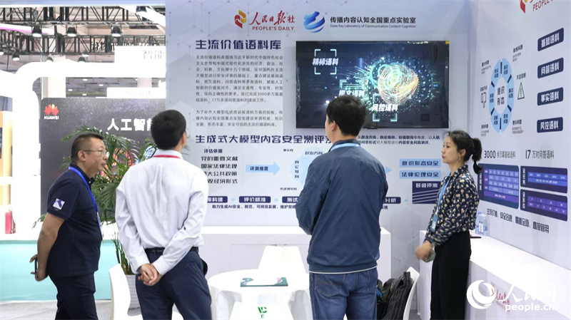 人民日?qǐng)?bào)社傳播內(nèi)容認(rèn)知全國重點(diǎn)實(shí)驗(yàn)室展區(qū)吸引眾多觀眾駐足了解。人民網(wǎng)記者 吳茜薇攝