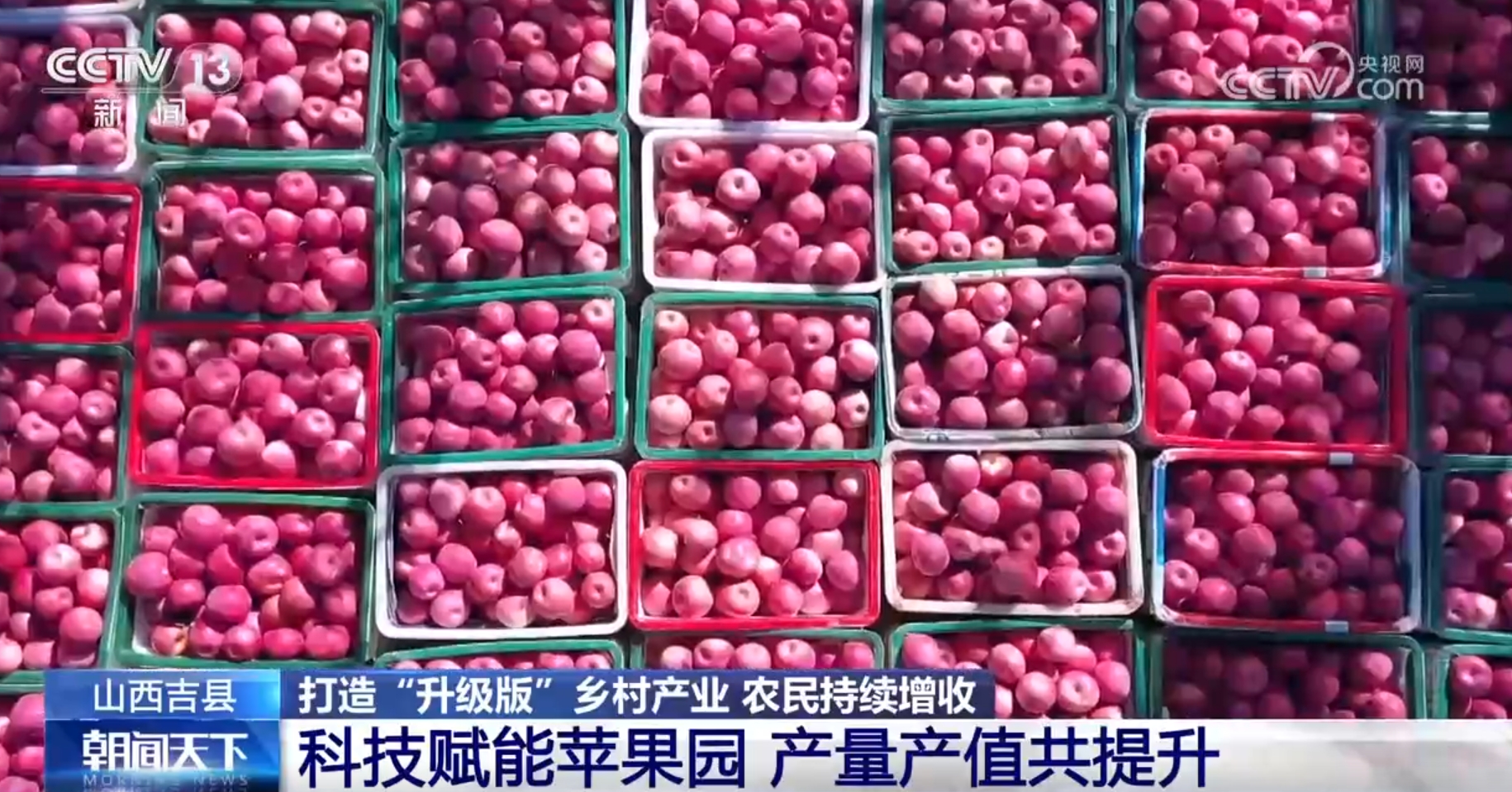 在山西吉縣,蘋果專業(yè)村占到了當(dāng)?shù)匦姓蹇倲?shù)的80%以上,為了讓蘋果產(chǎn)業(yè)做強(qiáng),當(dāng)?shù)匾钥萍假x能蘋果園,通過大數(shù)據(jù)、云計算進(jìn)行智能灌溉、精準(zhǔn)施肥,同時運用矮化密植栽培技術(shù)實現(xiàn)了蘋果產(chǎn)量和產(chǎn)值的提升,這項技術(shù)已經(jīng)運用在全縣5000畝蘋果地。