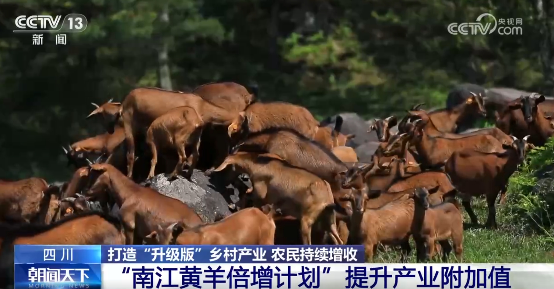 在四川省南江縣,南江黃羊是當(dāng)?shù)仂柟掏卣姑撠毠猿晒墓歉僧a(chǎn)業(yè)。2021年,南江縣啟動實施了南江黃羊倍增計劃,計劃用5年時間實現(xiàn)“種羊擴(kuò)繁、基地規(guī)模、農(nóng)戶收入、品牌價值、綜合產(chǎn)值”五個方面的倍增。目前已經(jīng)從最初的靠肉羊整體出售變?yōu)楝F(xiàn)在的羊肉深加工再出售,附加值提升了10多倍。