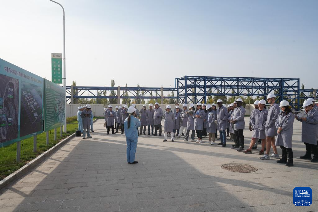 10月16日,嘉賓在中國石化新疆庫車綠氫示范項目參觀。新華社記者 陳朔 攝