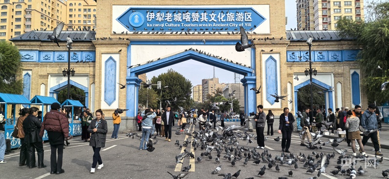 游客在伊寧市喀贊其文化旅游區(qū)游玩 (央廣網(wǎng)記者丁安 攝)