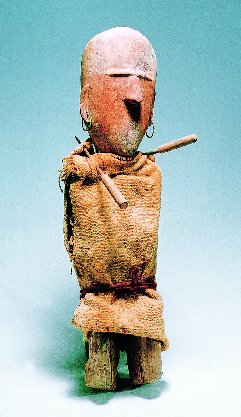 小河墓地出土的木雕人像。