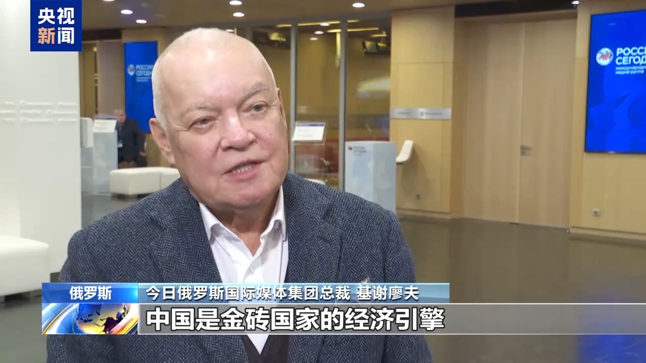 今日俄羅斯國際媒體集團總裁 基謝廖夫:中國是金磚國家的經(jīng)濟引擎,其他國家也作出了應有的貢獻,我也非常希望金磚國家繼續(xù)加強人文合作。