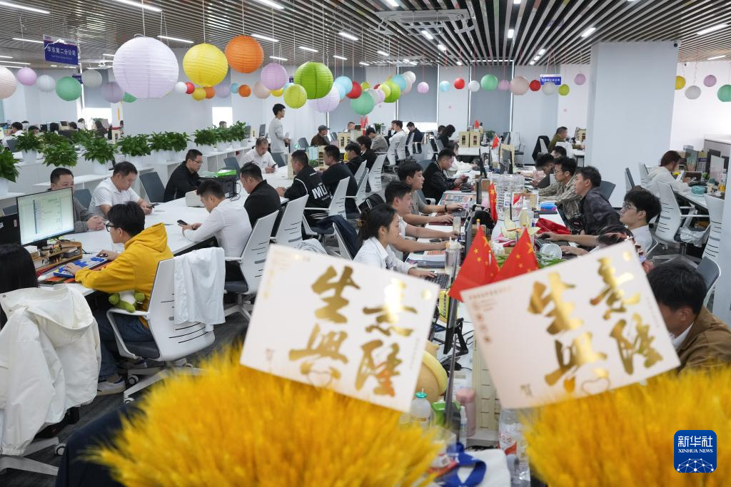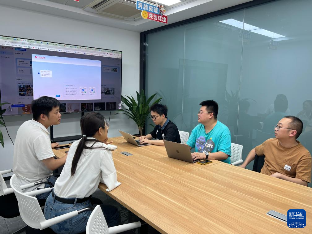 Chinagoods AI智創(chuàng)服務(wù)平臺(tái)的技術(shù)人員在討論一款新產(chǎn)品的設(shè)計(jì)(5月17日攝)。新華社發(fā)