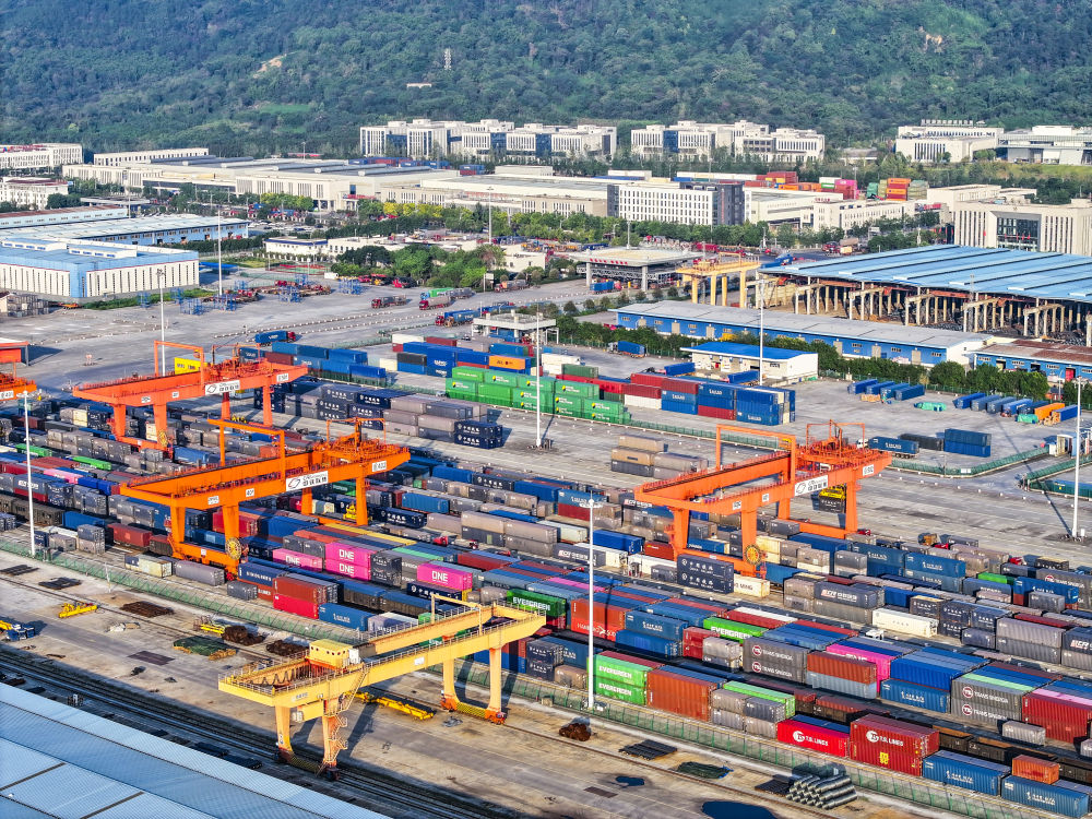 這是10月28日拍攝的重慶國(guó)際物流樞紐園區(qū)(無人機(jī)照片)。