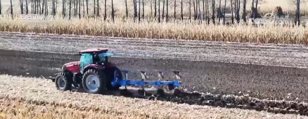 從空中看去,未收獲的地方是呈現(xiàn)金色,收割后的地面,大型的翻地機跟在后面將秸稈直接翻入地下,翻地車一過就露出油汪汪的黑土地了。這些翻完的地之后還要耙平、起壟,這樣第二年開春可以直接種植了。記者在當(dāng)?shù)夭稍L期間,看到了這些農(nóng)戶幾乎是24小時晝夜不停在進行收割和秋整地,可以說是“人歇機器不歇”,在搶抓農(nóng)時,當(dāng)?shù)赜芯湓捊小敖鹕x田、黑色越冬”。