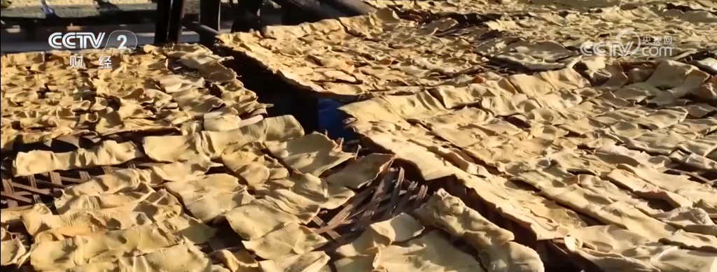 記者走進田林縣六隆鎮(zhèn)就聞到濃濃的筍香。經(jīng)過幾個月的自然發(fā)酵,扁平、泛白的八渡筍被村民從筍倉中取出,在陽光下自然晾曬,各家房前屋后鋪滿了金燦燦的八渡筍筍干。