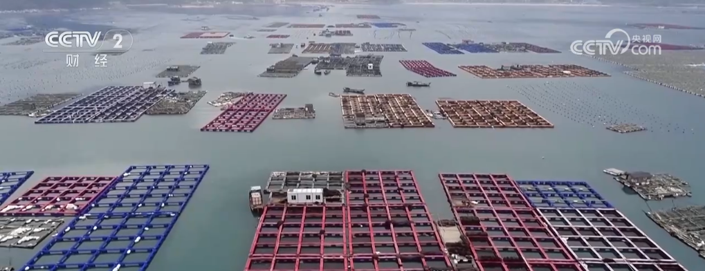 海面上,成片的漁排和網(wǎng)箱隨波蕩漾,一艘艘船只穿梭其間,接力運送著剛剛捕撈上來的章魚。漁民們配合默契,隨著漁網(wǎng)的收縮,成群的章魚浮至水面,漁民們撈起一網(wǎng)又一網(wǎng)的章魚放入身旁的筐中,隨后倒入活水運輸船準備出售。
