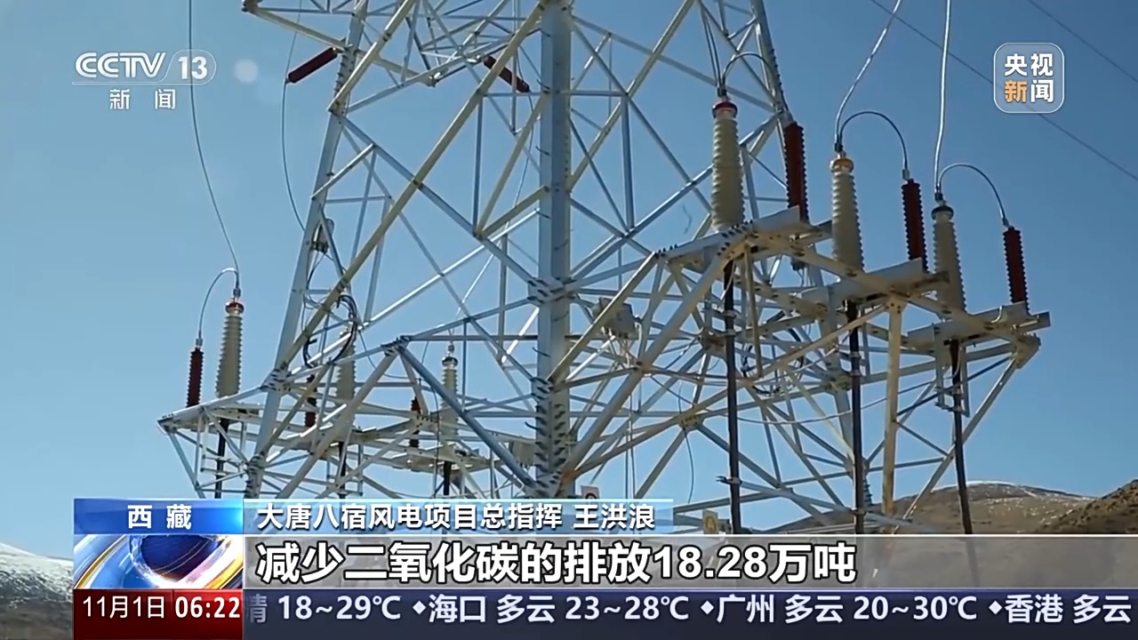 大唐八宿風(fēng)電項目總指揮 王洪浪:項目投產(chǎn)后每年可以新增清潔電力2.23億度以上,可節(jié)約標(biāo)(準(zhǔn))煤約7.31萬噸,減少二氧化碳的排放18.28萬噸??梢詽M足23萬人全年生活用電。在保障人民群眾冬季供暖和電力安全供應(yīng)的同時,可有效地改善西藏自治區(qū)的能源結(jié)構(gòu)。